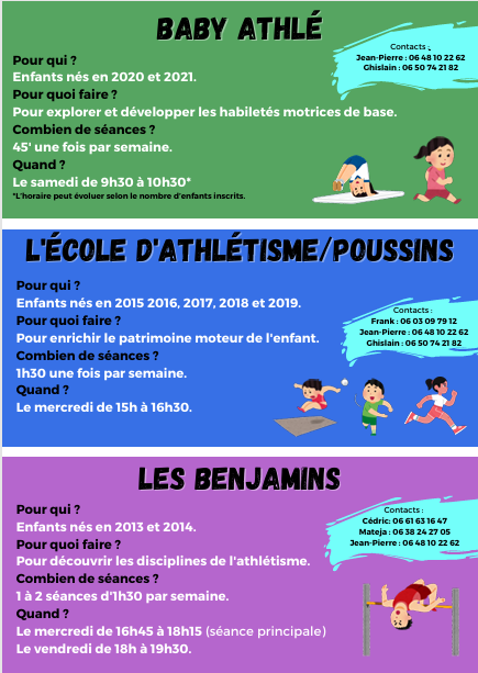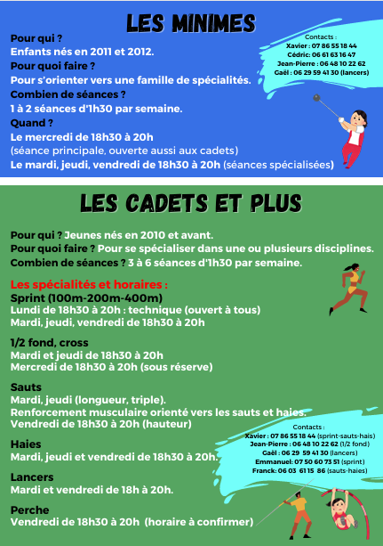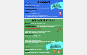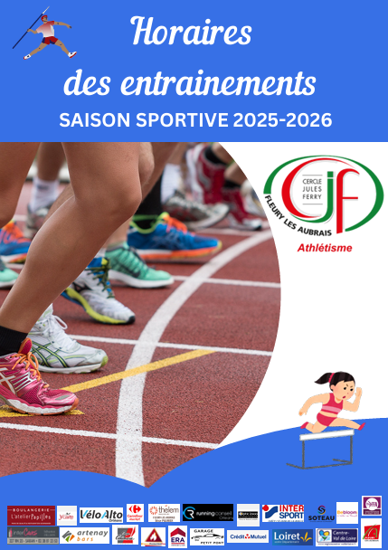 Veuillez trouver ci-joint la photo des horaires de l’ensemble des entraînements du club.