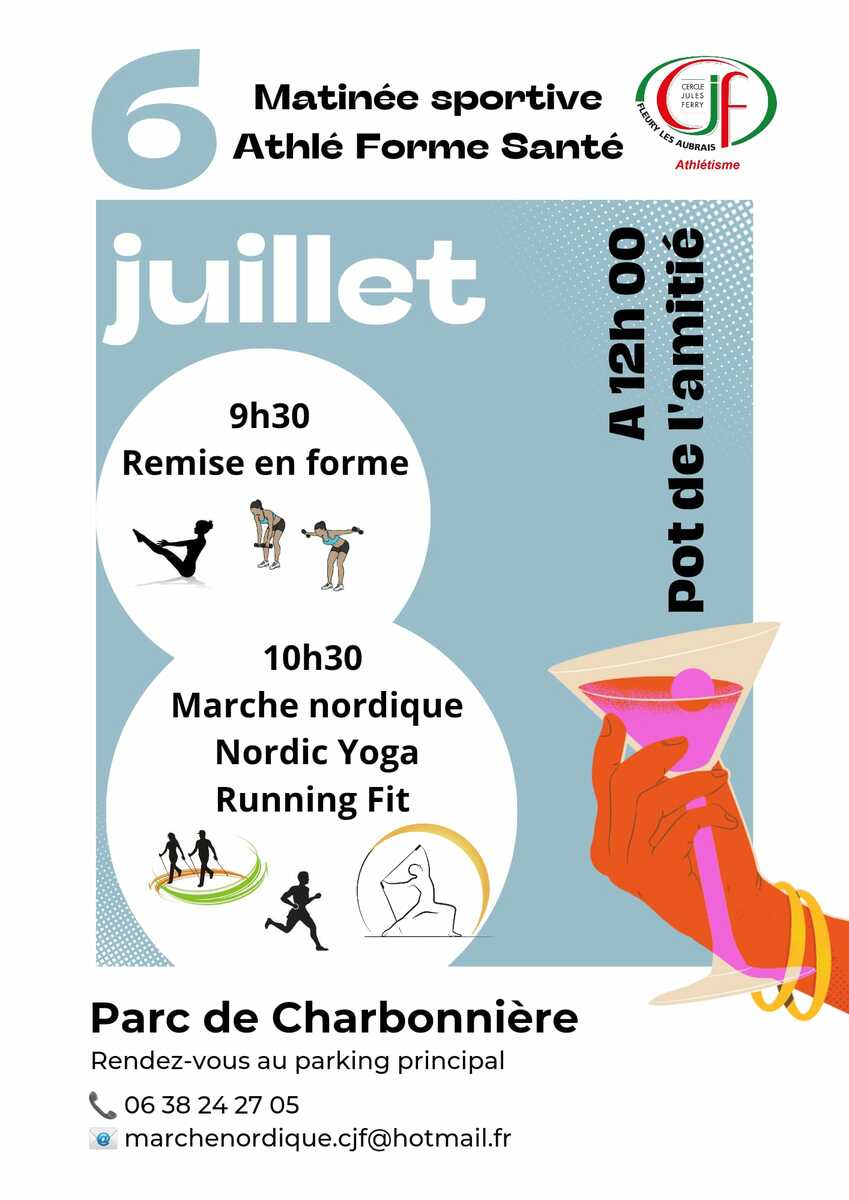 🌸🍹Pour clôturer cette année sportive, nous vous proposons un pot de l'amitié entre les adhérent(e)s d'Athlé forme santé, qui aura lieu le samedi 6 juillet à 12h au parc de la Charbonnière.